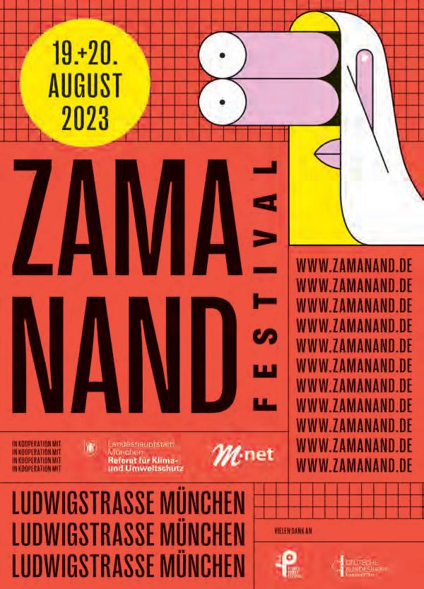 Roxxdoxx und Troubleshooters zu hören. Ausgewählt von der Musikredaktion des M94.5-Teams erhalten in der Nähe der Bayerischen Staatsbibliothek junge Künstlerinnen eine amtliche Open-Air-Auftrittsmöglichkeit. Neben Informationen von engagierten NGOs und Vereinen präsentiert auch die „Stadt der Zukunft“ neue und spannende Denkansätze. Und: Der Kinderspielbereich vor der Grünfläche des Innenministeriums soll ein Ort sein, an dem Kinder und Jugendliche im Alter von 4 bis 14 Jahren sicher spielen, lernen und sich ausdrücken können. Alle Infos unter www.zamanand.de