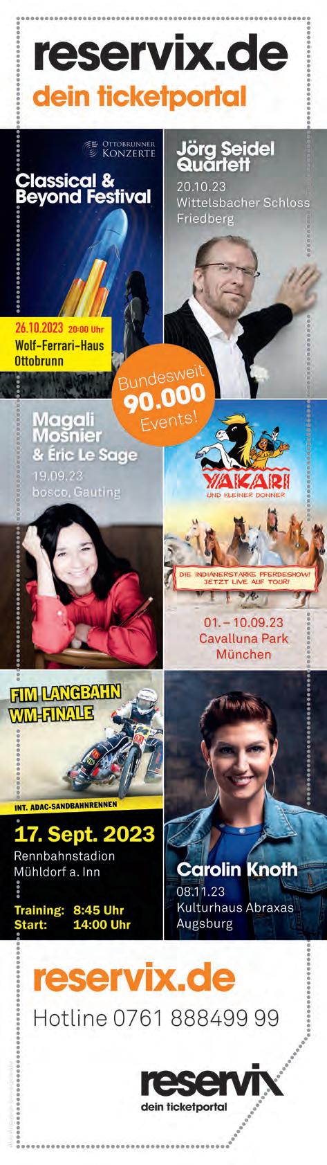 tet, weitere Konzerte führen an den Grünspitz und den Giesinger Bahnhof. Eine genaue Übersicht über die geplanten Konzerte kann man sich auf Instagram unter @ois_giasing verschaffen. Nicht ganz kostenlos, dafür wirklich eindrücklich sind die Film-Abende, die man vom 9. – 16.8. auf dem königsplatz verbringen kann. Das Open-Air-Kino bietet für 10 Euro pro Film aktuelle Blockbuster wie Indiana Jones: Das Rad des Schicksals (14.8.) und Mission: Impossible – Dead Reckoning Teil Eins (15.8.) vor atemberaubender Kulisse. Vorbeischauen lohnt sich definitiv.