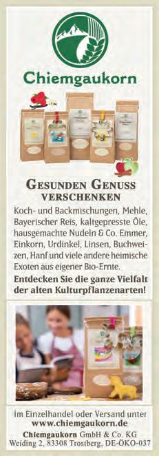 Julia so gar kein Geheimnis – viele Anregungen gibt’s ebenfalls online und in ihrem Buch „Kochen mit regionalem Urgetreide“ (19.90 Euro). Für das adventliche Platzerlbacken empfehlen sich z.B. die sehr nussigen „Knusperkekse“ aus Buchweizen- und Braunhirsevollkornmehl – übrigens vegan und glutenfrei. www.chiemgaukor n.de
