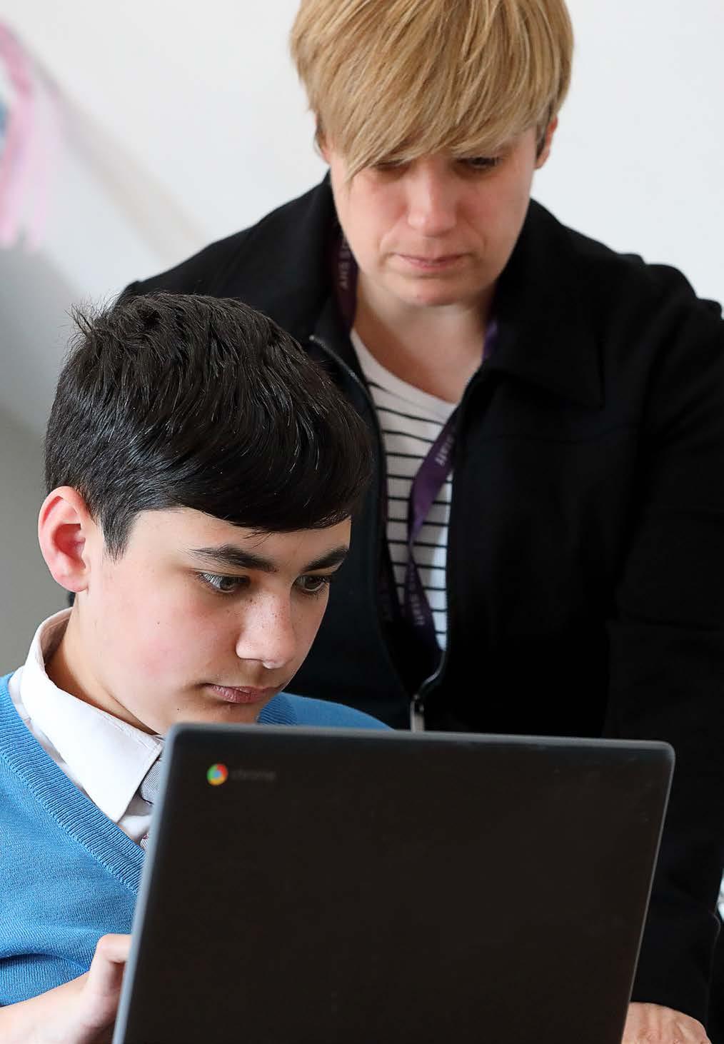 In terms of teaching digital etiquette and behaviour, students are expected to only use their Chromebook when instructed or permitted by the teacher,19 closing it during parts of the lesson where the teacher or peers are speaking to them in order to ensure active listening and concentration on the speaker This was observed as consistent and embedded across subjects and year groups� Digital etiquette and behaviours were consistently observed as being explicitly taught as part of everyday teaching and learning, alongside the wide range of other social, emotional and pastoral support embedded in every classroom