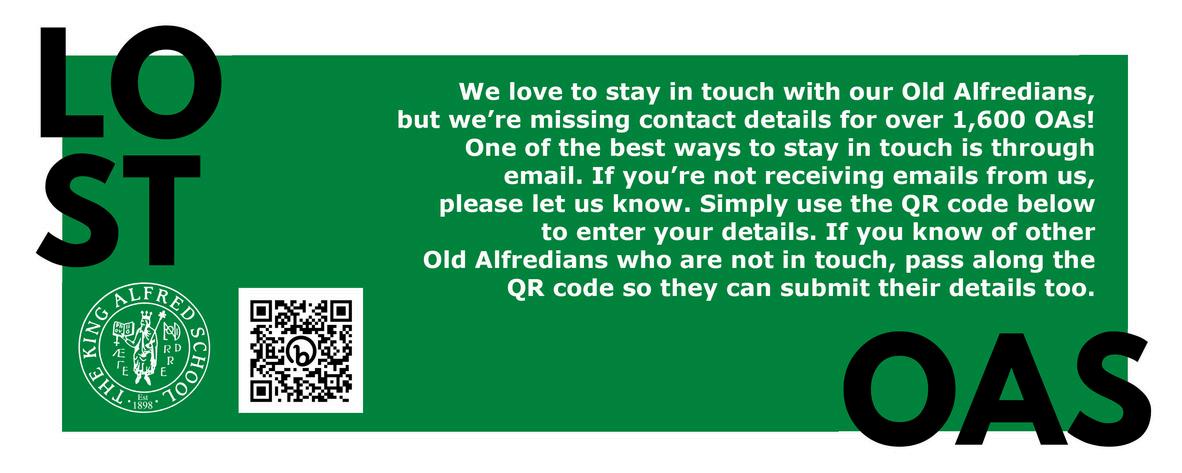 scan the QR code. You can also contact the Development Office on 0208 457 5265 or development@kingalfred.org.uk.
