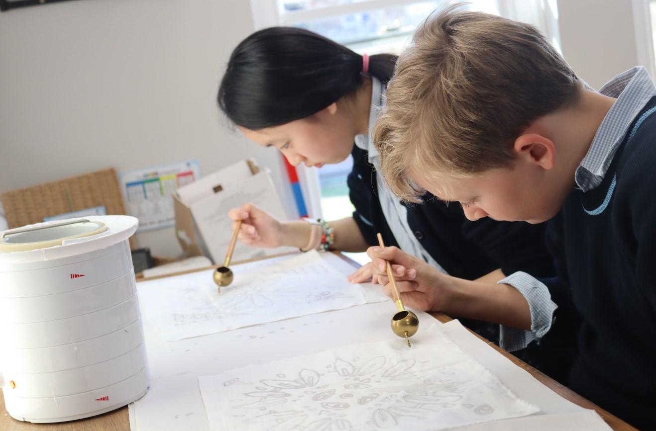 We have been inspired by the Ancient Egyptians, traditional Indian crafts, London past and present and environmental art. The pupils have enjoyed learning new techniques, experimenting with a variety of mediums and creating amazing pieces. Pupils in Prep have made batik cushions, canopic jars, sculptures made with wire and watercolour paintings. Pre-prep have been learning about colour theory and using objects from nature to create designs based on the artist Andy Goldsworthy.