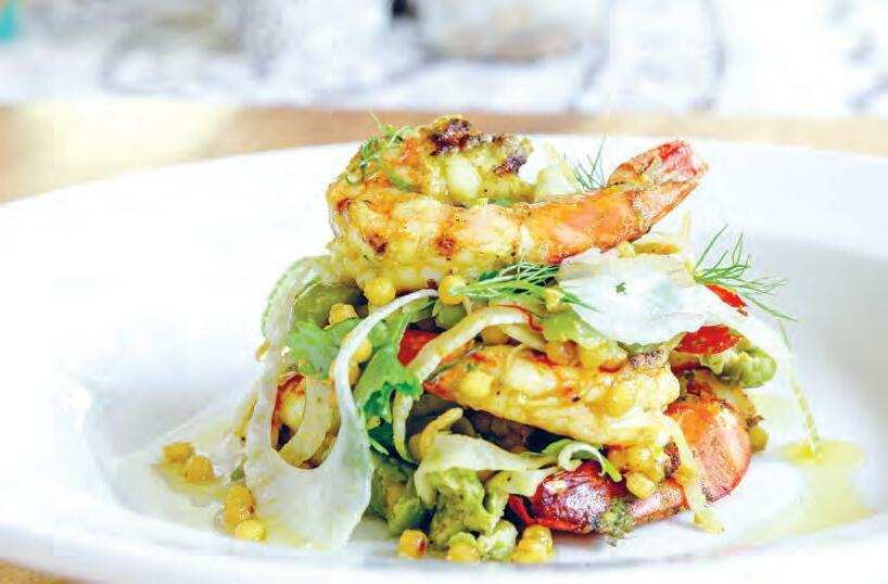 CHERMOULA PRAWNS WITH ISRAELI COUS COUS, FENNEL, PRESERVED