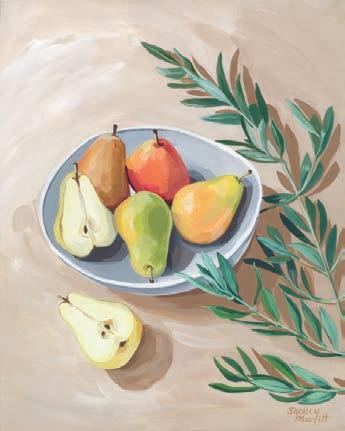 This vision of Shelley’s emerged when she bought a bunch of pears from Erbachers in Maroochydore and cut olive branches from her backyard tree.