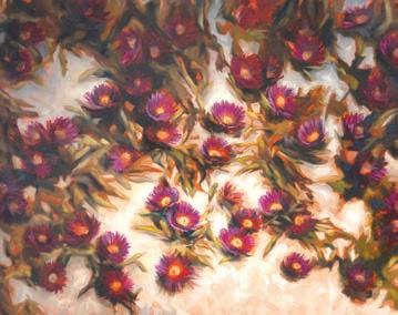 This is my kind of rustic retreat, an artist’ dream to be precise, and Jasmine, husband Sam and their children Harriet and Charles are living a quiet, contented life as Jasmine prepares to open her first solo exhibition – Dance of the Wildflowers at the Cooroy Butter Factory Arts Centre.