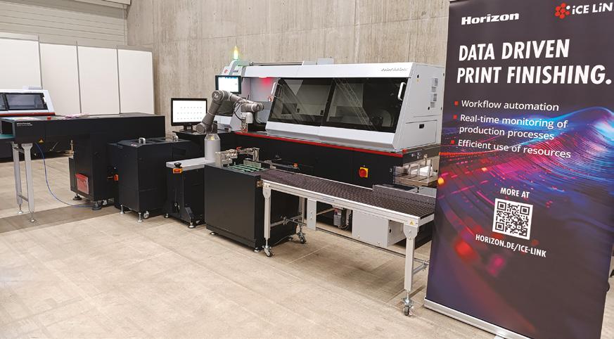 Per quanto riguarda la connettività, Müller Martini ha mostrato il suo pieno potenziale presso il suo stand. In collaborazione con Hunkeler e i partner Heidelberg e HP, sono state presentate due soluzioni all-in-one. I visitatori hanno assistito alla produzione completamente automatizzata di un libro con copertina morbida finito, in linea, sia da bobina bianca che da foglio bianco, senza alcun intervento manuale. Dalle macchine da stampa digitali a bobina e a foglio al robot di taglio con una successiva soluzione di smistamento, il processo è stato fluido e altamente efficiente.