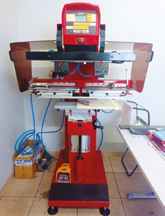 grande formato da 800 cicli l’ora per stampa a 2 colori su superficie massima di 25x10cm. Adatta per stampa su suole, scarpe e oggetti di medie dimensioni. Alimentazione ad aria compressa. Disponibili tamponi, colori, solventi e lastre per clichè.