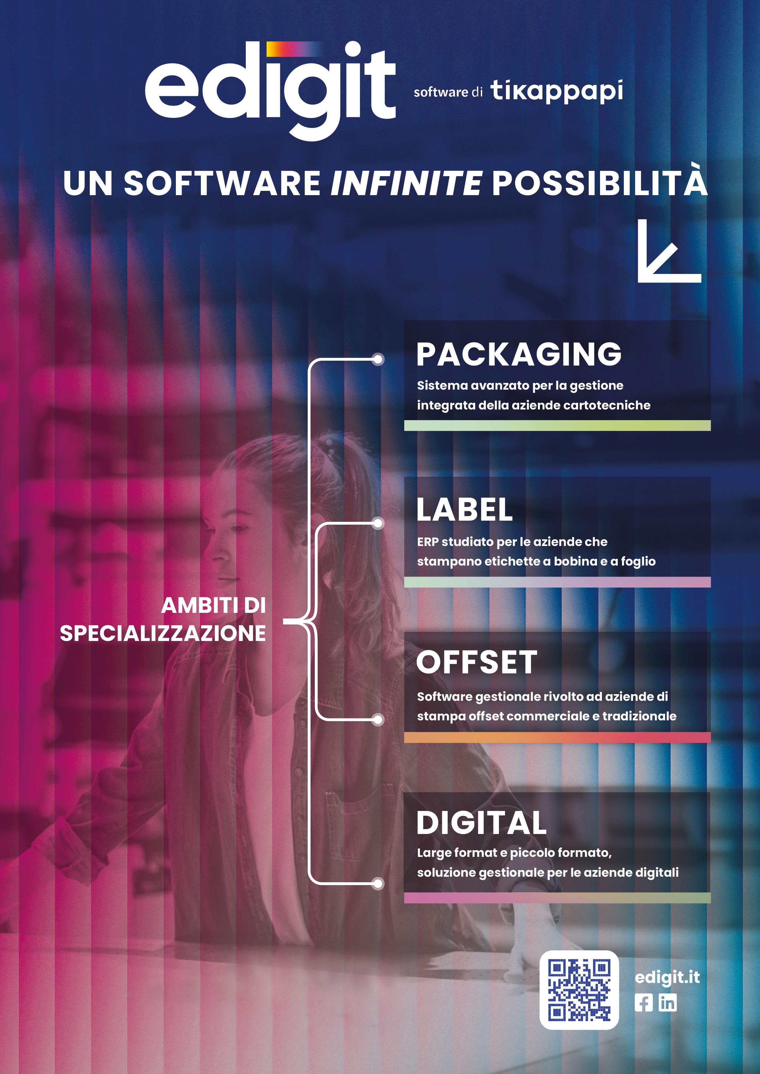 cartotecnica (packaging in cartone teso e luxury), della serigrafia (gadget promozionali), della stampa digitale su carta e digitale grande formato, della realizzazione dei materiali di allestimento per negozi e fiere, della cartellonistica e della realizzazione di insegne luminose e non, con un’area di 6.000 mq coperti e oltre 10.000 mq di pertinenza.