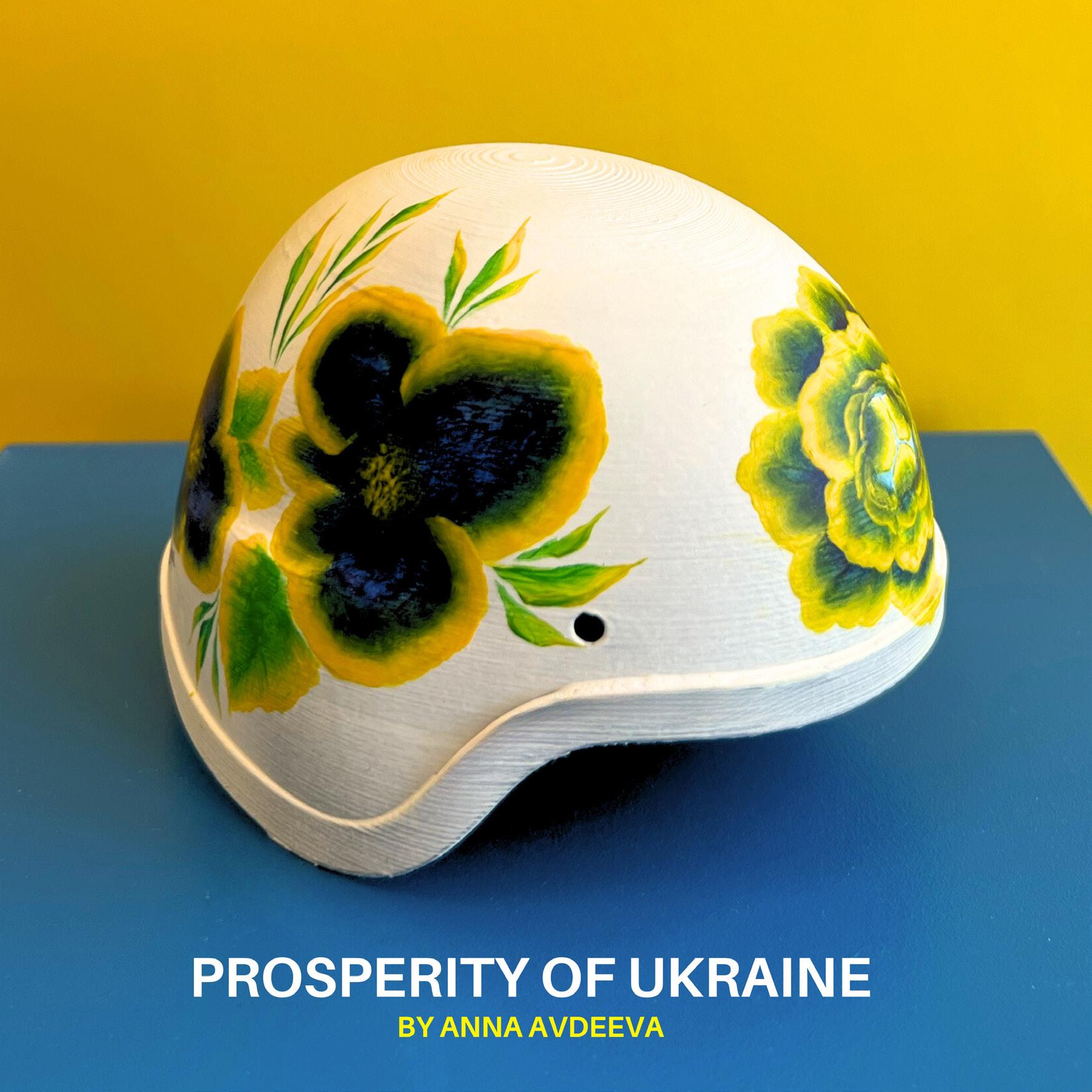 Auction painted helmets to support Ukrainian children’s charities and the military, ensuring a significant portion of proceeds aids these causes.