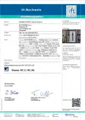 Protuprovalni paket RC 2 i RC3, provjereni su od strane instituta ift Rosenheim i osiguravaju trajno poštivanje visokih razina sigurnosnih klasa. Izgled i dizajn ulaznih vrata pri tom nisu poremećeni.