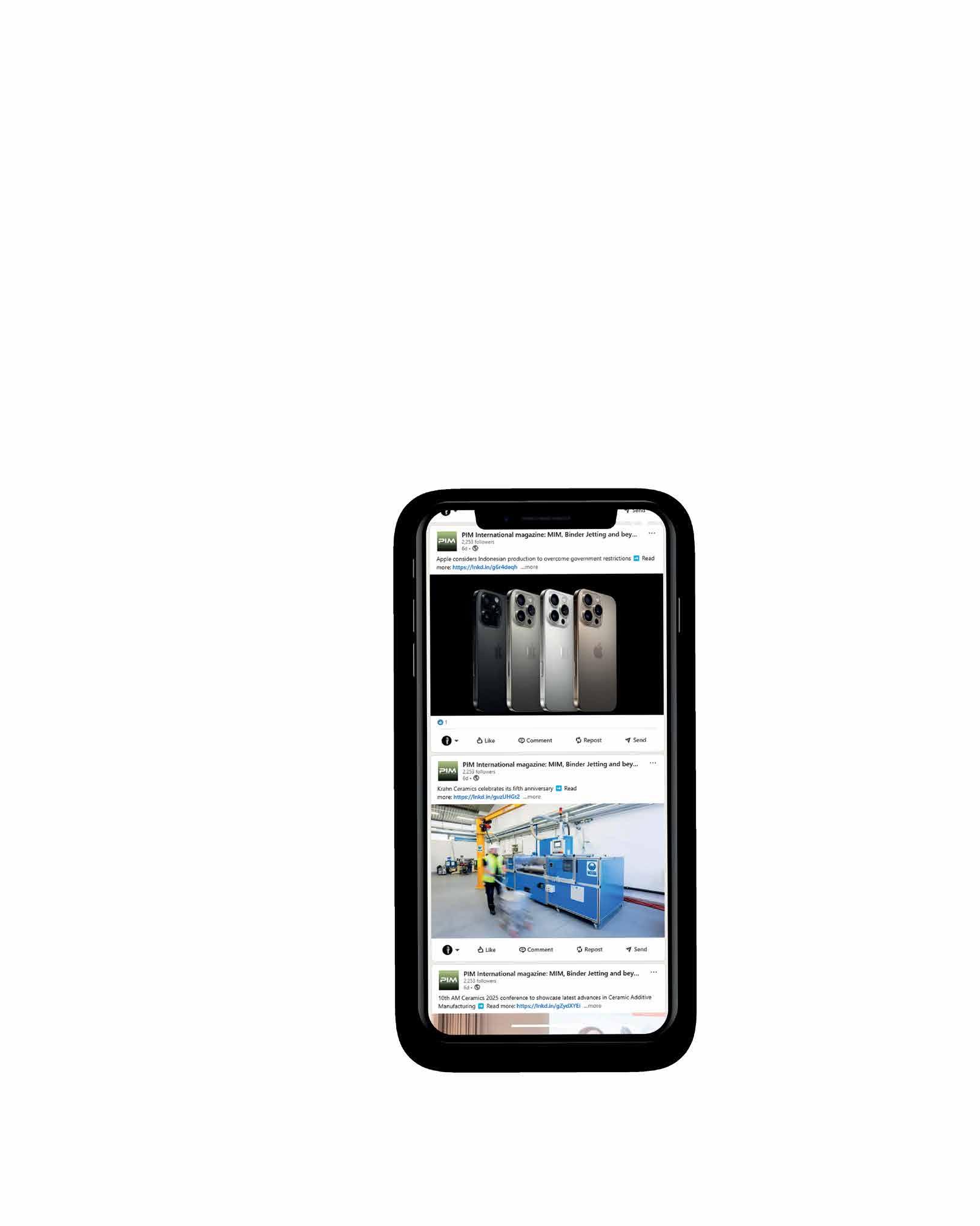 As the only magazine for MIM, CIM, and sinter-based AM, our LinkedIn, Twitter, and Facebook channels serve as indispensable sources for the latest industry news.