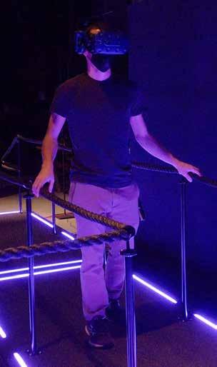 up with light backpacks, hand- and foot-sensors and headsets. Through their customizable avatars, guests can see and interact with one another and with the environment. Technifex Products provided all the 4D effects for the various venues. The scope of work included designing the structure that surrounds the play area which houses the modular effects.