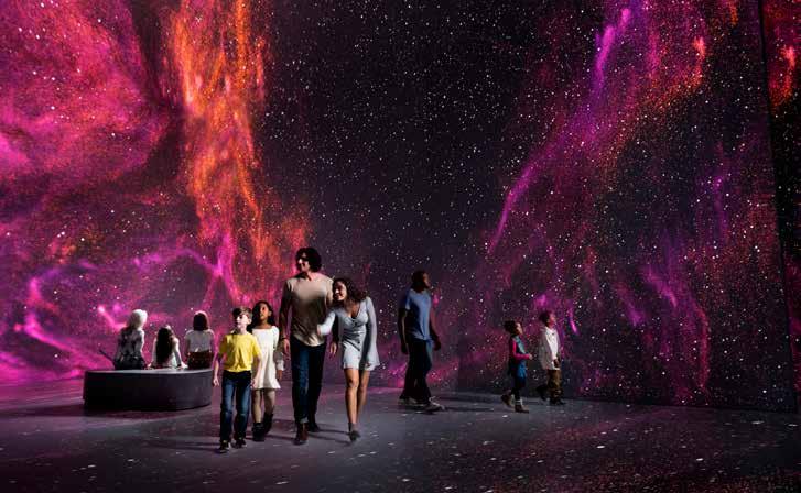 Penny: The creators of Illuminarium Experiences, two trailblazing, experiential cinema installations in Atlanta and Las Vegas, set out to create an inspirational environment that transports visitors to new worlds. They wanted to invite the audience to explore the room freely, creating their own journey around the moving, interactive content.