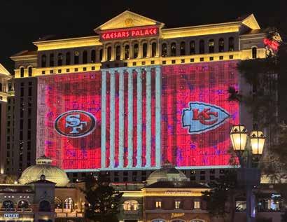 For Super Bowl LVIII in 2024 the exterior of Caesars Palace in Las Vegas was turned into a full projected surface.