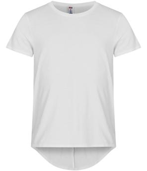 T-shirt premium extra lunga. Tessuto jersey pre-ristretto con trattamento enzimatico. Nastrino parasudore. Colletto a costine rinforzato.