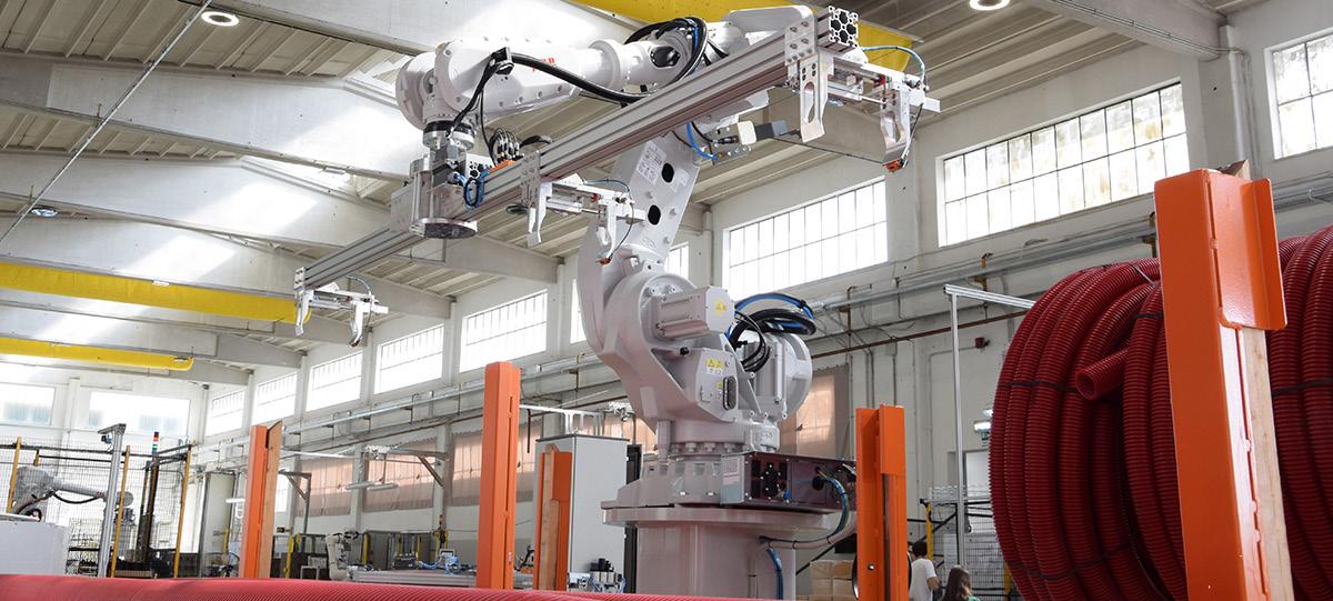 • and most notably, an innovative system for the automation of the end of the extrusion lines for PVC pipes (both corrugated and smooth) up to diameter 800 mm, operating 24 hours a day.