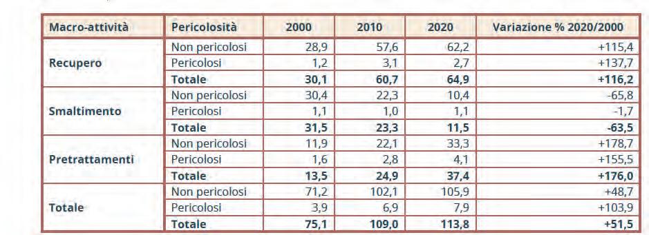 no 1997, quando la raccolta differenziata dei rifiuti urbani era solo del 9,4 %, l’Italia ha fatto quindi un grande salto in avanti per arrivare al 2020 con il 63% di raccolta differenziata dei rifiuti urbani.