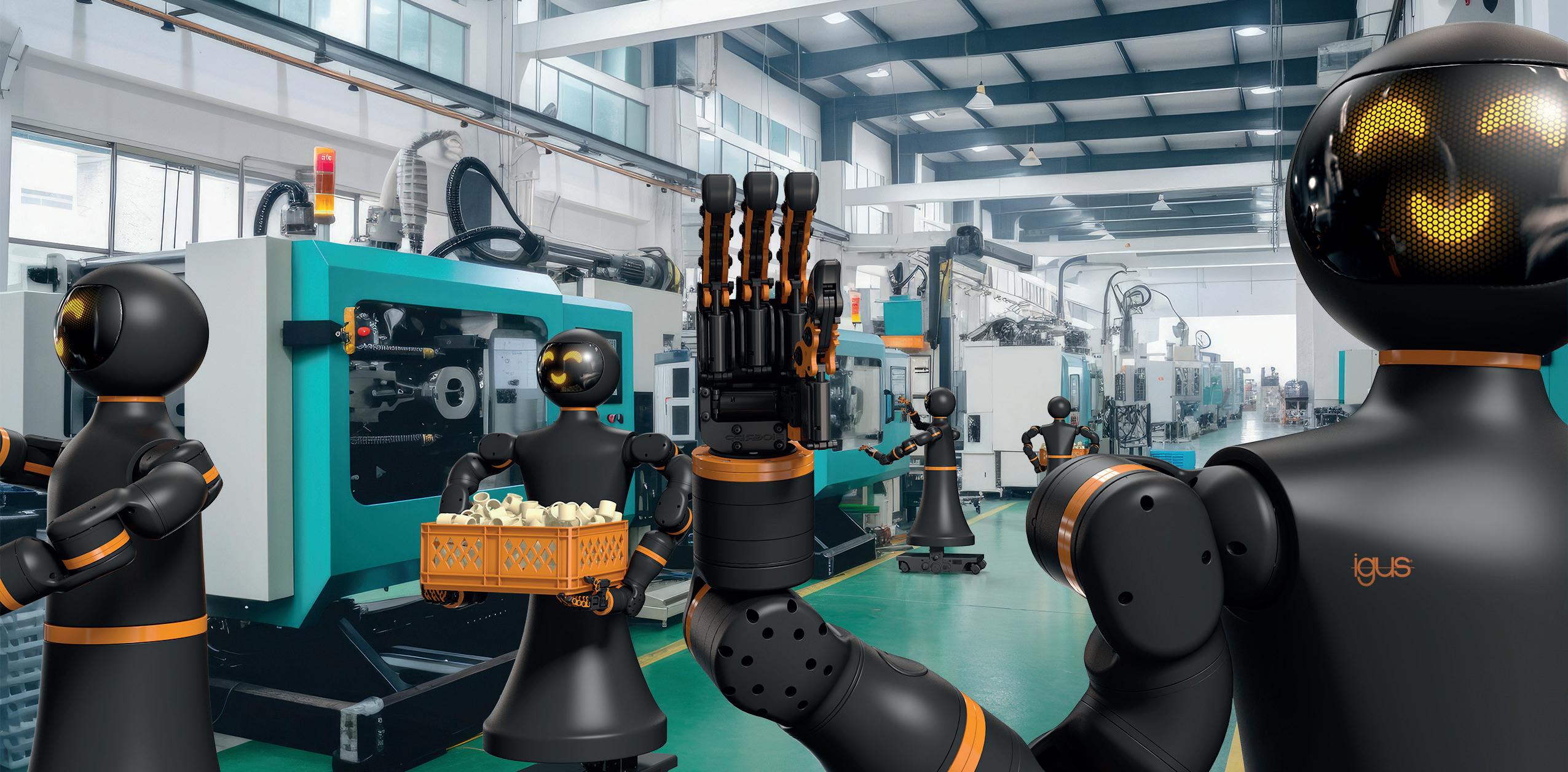 Il robot di igus dalle braccia in plastica, economico e ad alte prestazioni, è progettato per supportare svariate tipologie di applicazioni industriali, operare in modo autonomo per otto ore e perfino accogliere i colleghi con un sorriso.
