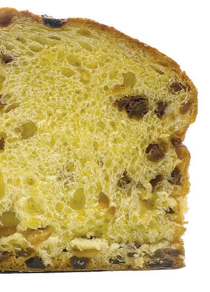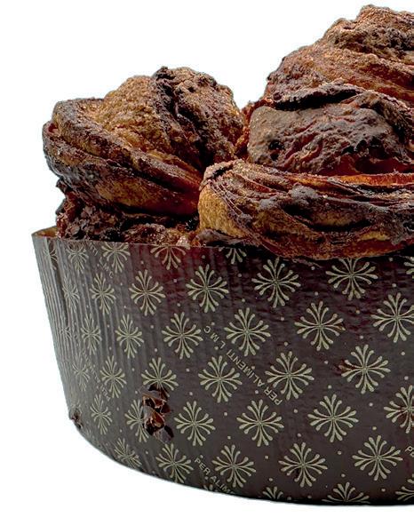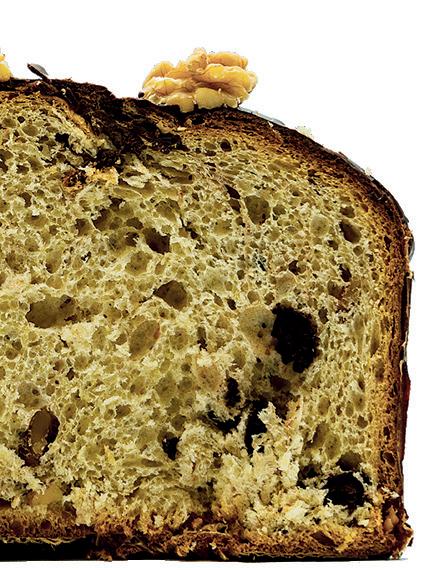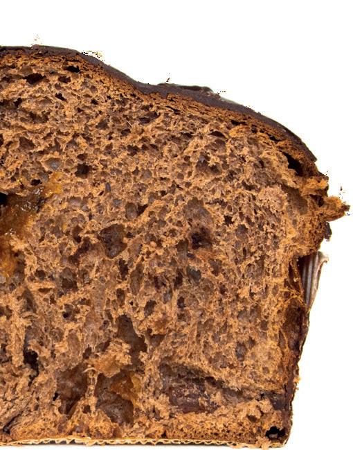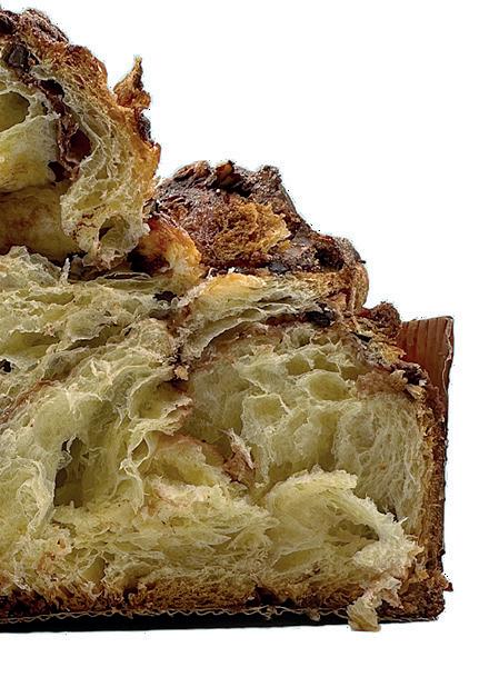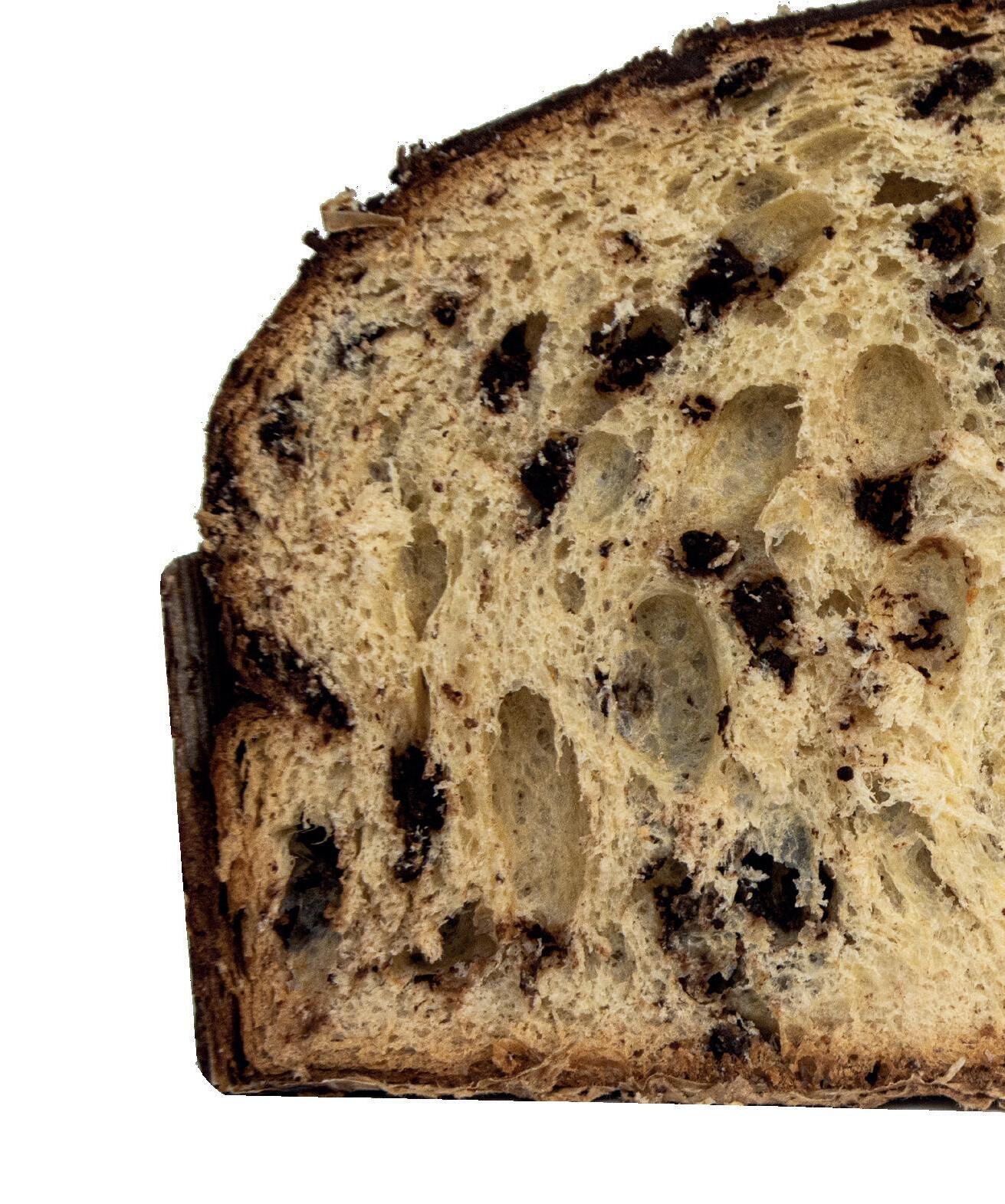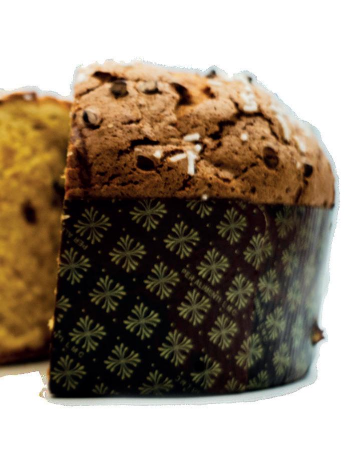 Un’alternativa diversa al tipico panettone. È fatta con farina di farro e lavorata nello stesso metodo utilizzato per le brioches. È arricchita con noci, cioccolato e una parte superiore croccante grazie allo zucchero grezzo.