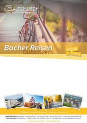 Einfach www.bacher-reisen.com aufrufen und den „Gutschein“-Button rechts oben anklicken. Gewünschten Betrag & Widmung auswählen, fertig! ... kommt mit Sicherheit besser an!