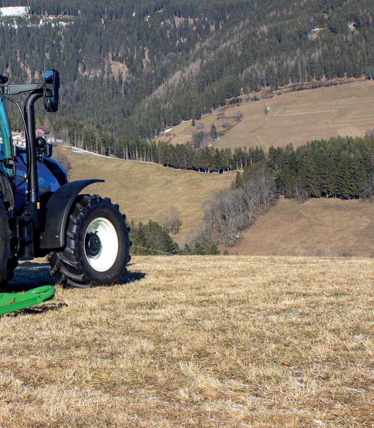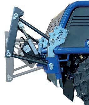 Der ganze Lenkholm lässt sich seitlich drehen, z.B. für Arbeiten in Hanglagen. Weiters ist er um 180° Drehbar und erlaubt so den Einsatz mit gezogenen Anbaugeräten wie z.B. einer Bodenfräse oder einem Pflug.