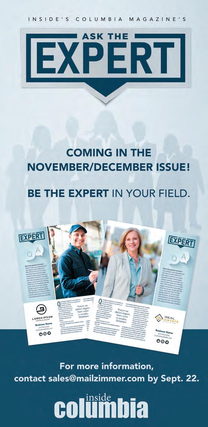 Inside Columbia is the best way to reach Columbia’s upscale consumers. Information about advertising is available online at InsideColumbia.net or by calling 573-875-1099.