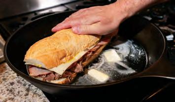 If you have achieved the crust, but still need the cheese to melt, turn off the heat and flip the pan upside down for a few minutes to let the residual heat melt the cheese. Remove the sandwich and let it rest for a minute or two, wrap in butcher paper and you are ready to go.