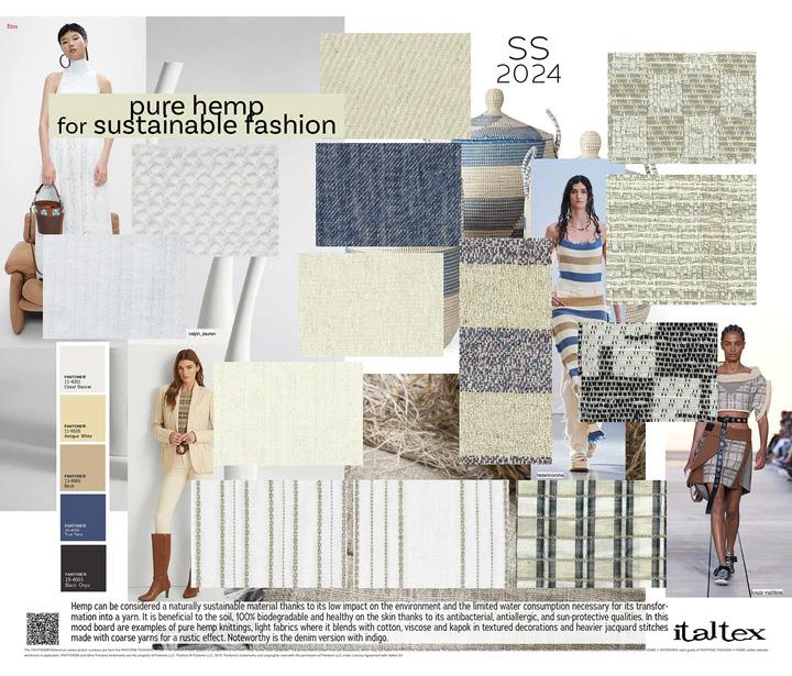 Womenswear Spring/Summer 2024 is rend on colours and fabrics that provides complete information on all the main elements of the season: from fibres to woven and knitted fabrics, colours, patterns, finishes, pictures suggesting their use and mood pictures. This season, trends are driven by colour and based on the consciousness that sustainability is the only viable path.