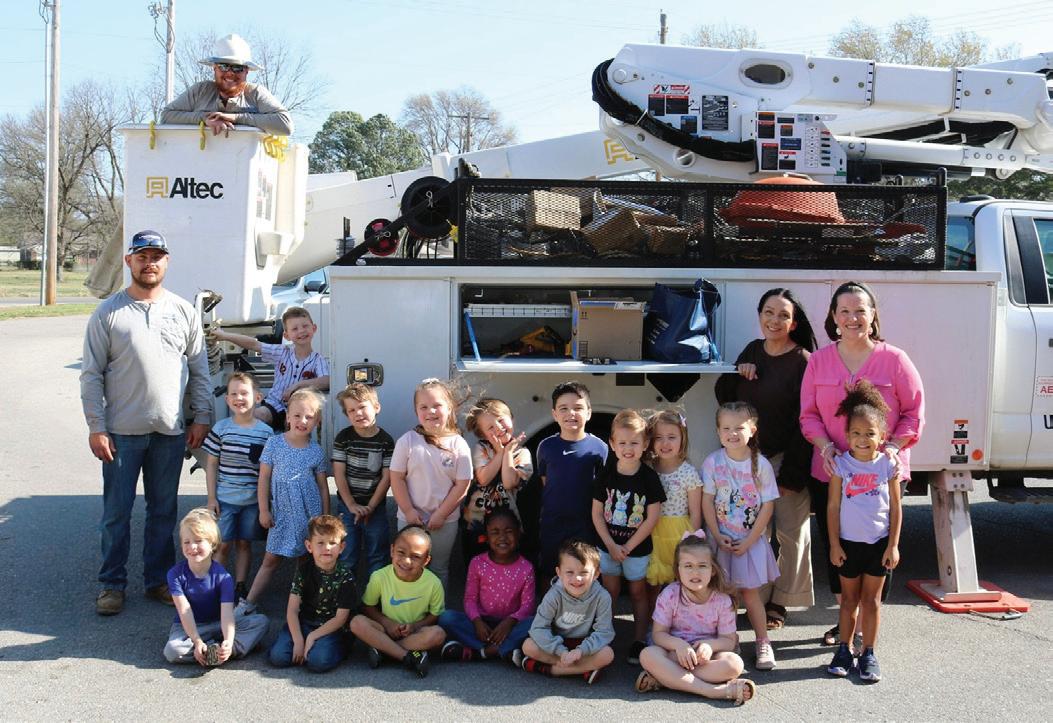 During the visit, students learned what it takes to keep the lights on and how crews safely restore power during outages. They enjoyed an up-close look at the equipment used in the field and were especially fascinated by the bucket truck. Many students even had the opportunity to sit inside the truck for photos, making the experience both educational and memorable.
