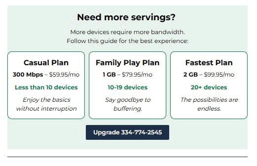• Sales and upgrade messaging to promote additional services