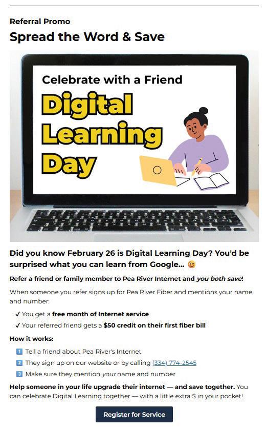 Pea River Cooperative launched a dedicated fiber enews to support subscriber communication and drive ongoing engagement—introducing a more strategic approach to subscriber outreach.