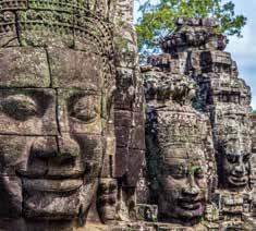 Explore Angkor Thom and Bayon with its giant stone faces, the Terraces of Elephants and the Leper King, and Ta Prohm with its tree roots. Conclude at Angkor Wat before a Khmer farewell dinner.