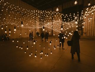 Mexican-Canadian media artist LozanoHemmer works at the intersection of architecture, technology and performance. His upside-down-landscape installation, Pulse Topology, uses remote heart sensors and AI to detect the pulse rates of viewers entering the space, which then activates a net of ceiling-suspended 3,000 LED lights to generate an interactive scenario of light and sound.