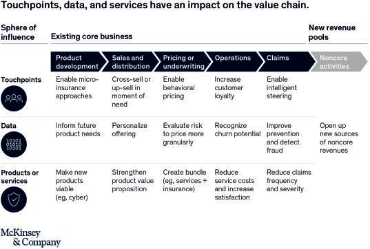 Asclientengagementcontinuestogrow,sodoesthe volumeandvalueofthedata.Insurersbegintohaveamore robustviewoftheirpolicyholdersandtheirrisks.This enablesinsurerstobetterwriterisk,identifyupsell/cross sellopportunities,andprovideproactiveresourcesbasedon clientneedstohelpreducefrequency/severityofclaims.