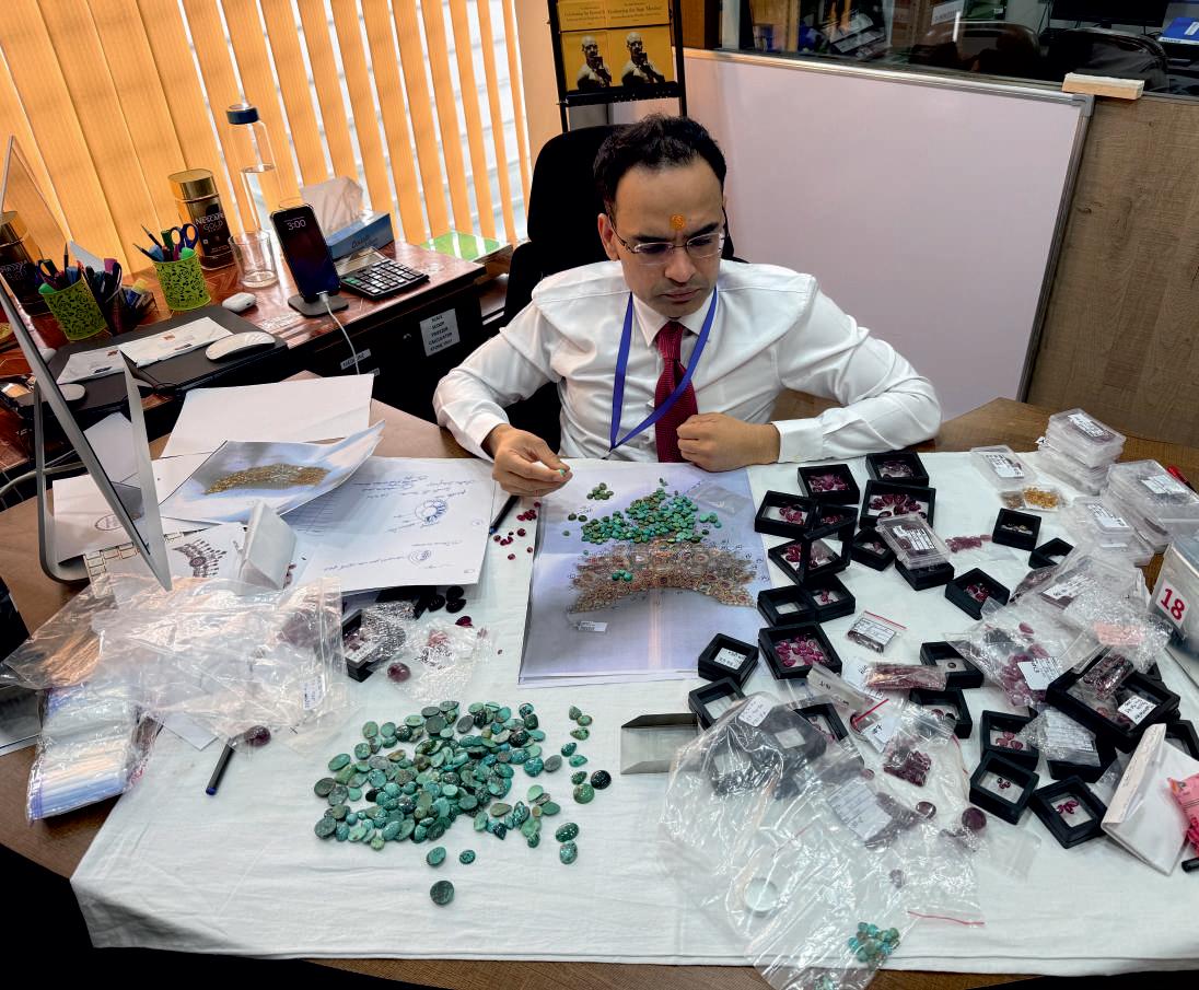 representsaperfect convergenceof agelessartistryandmodern innovation,heritagecrafts mergingwithcutting-edge designtechnologies.This sectordemandsan understandingofchanging consumerpreferencesand preservingtraditional techniquesastheyde ine thejewelryindustry'svery essence.Nowadays, customersappreciate authenticity,customization andsustainability;thus, jewelrymarketbusiness offerschallengesand opportunitiestocompanies thatstandoutinexcellence. Thisdynamicsphereof balancingtheoldwiththe newbecomesatestamentto theresilienceandvisionofa brand. Dr. Abhishek Gilara, Managing Director,isa visionaryleaderwhohas rede inedtheartof combiningtraditionwith innovation.Hisleadership re lectsacommitmentto preservingtheintricate craftsmanshipofjewelrymakingwhileembracing forward-thinking approachesthatenhance creativityandoperational ef iciency.Dr.Abhishek's insightfulstrategicthinking andempatheticleadership styleencourageacultureof collaborationthatinspires histeamtoexcelincreating designsthatcaptivateglobal audiences.Hisabilityto blendauthenticitywith modernizationunderscores hisin luenceinshapingthe jewelryindustry'sfuture. Rambhajo's isaname thatsaysheritageand innovation-ahundredyears inthejewelrybusiness.The companyachieveshallmark