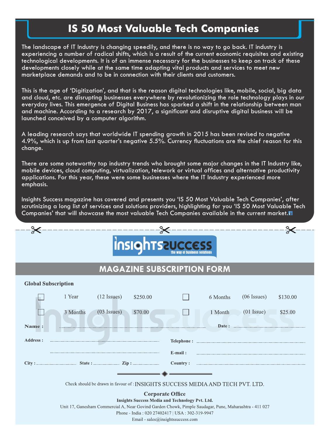 IS 50 Most Valuable Enterprise Tech Companies Dec2015 by Insights Success Media - Issuu