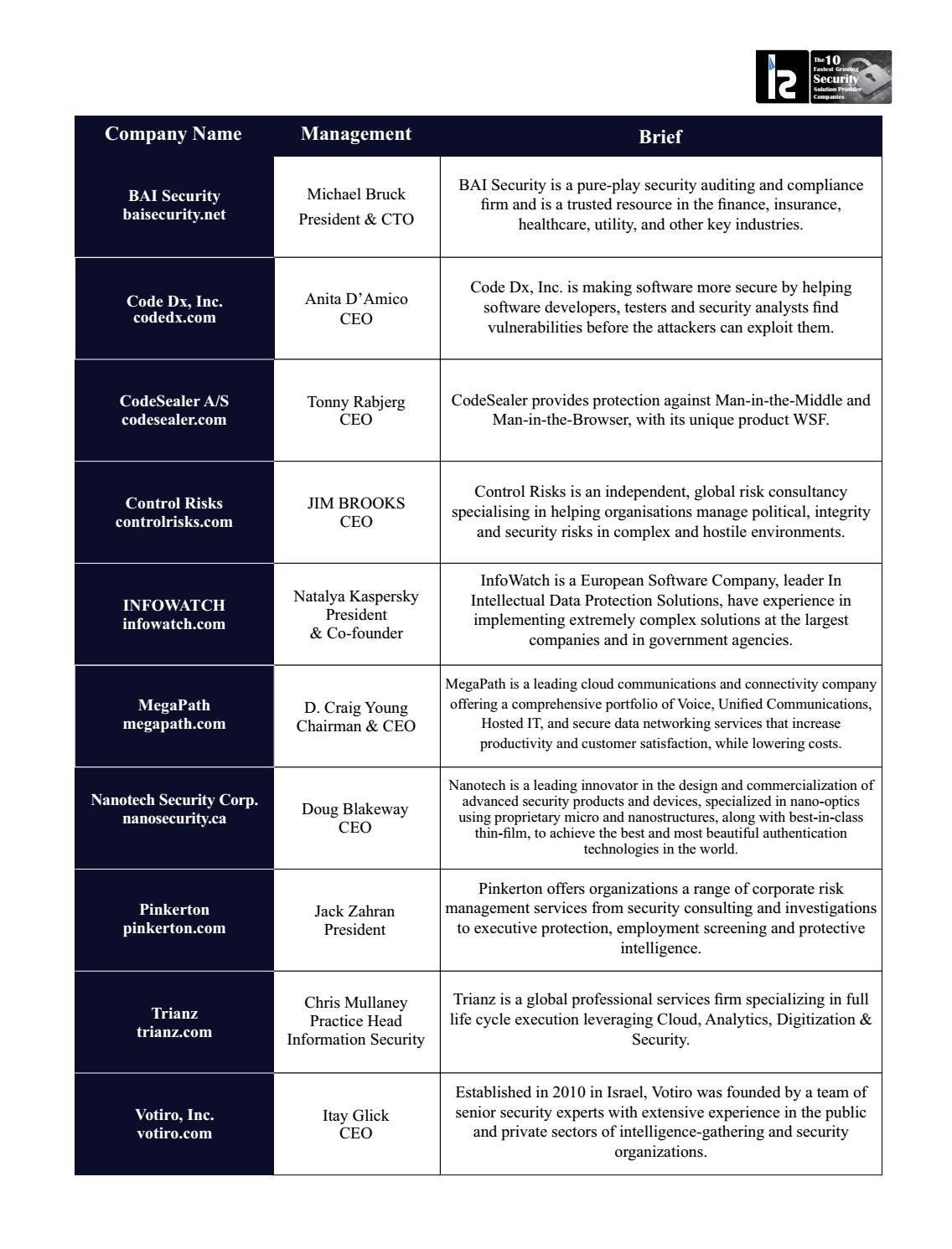 The 10 Fastest Growing Security Solution Provider Companies November2016