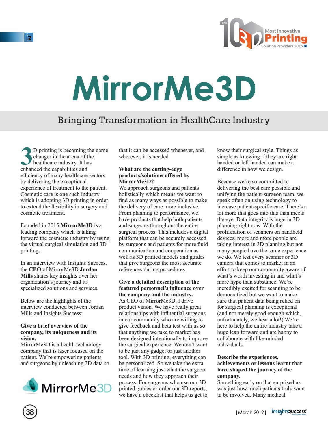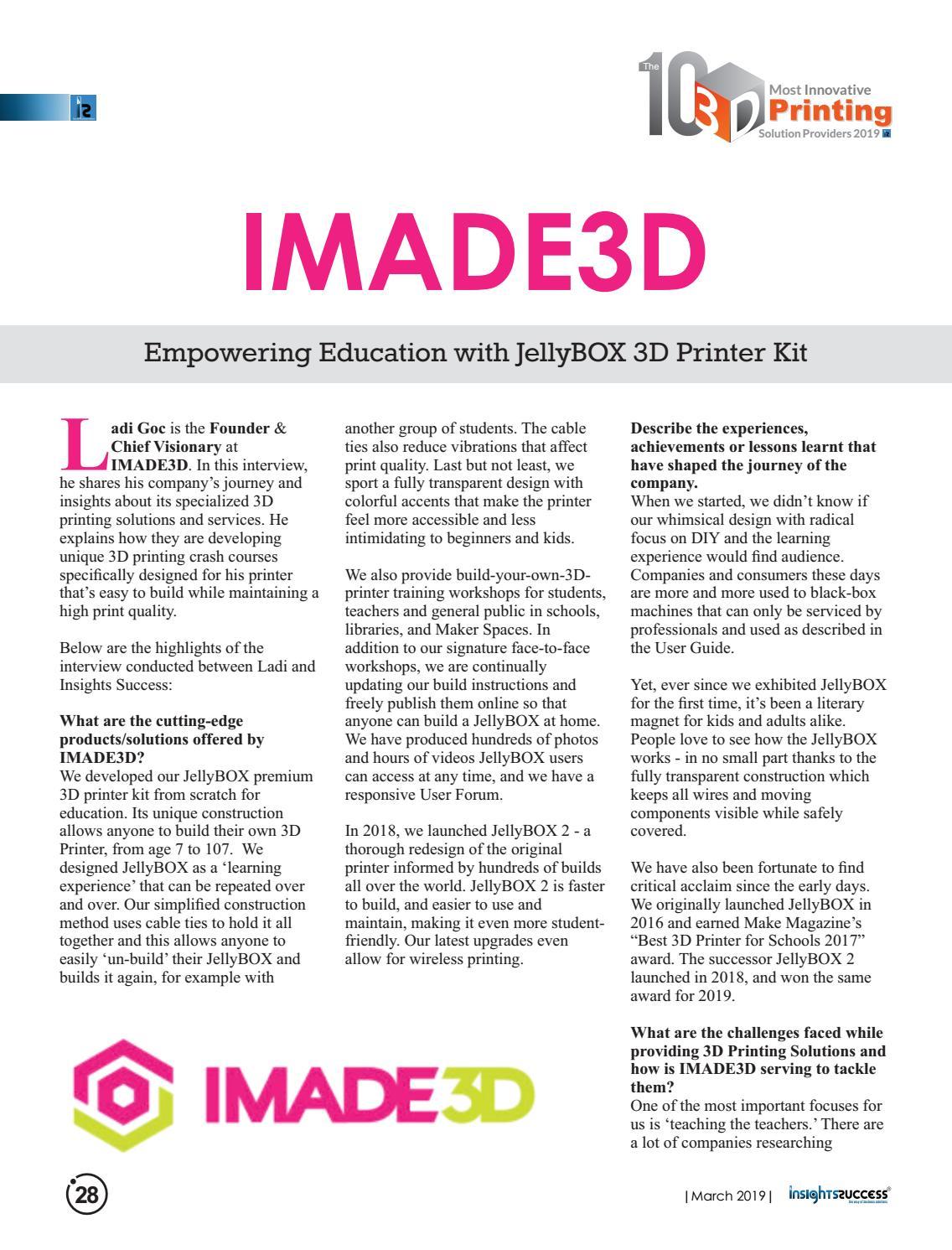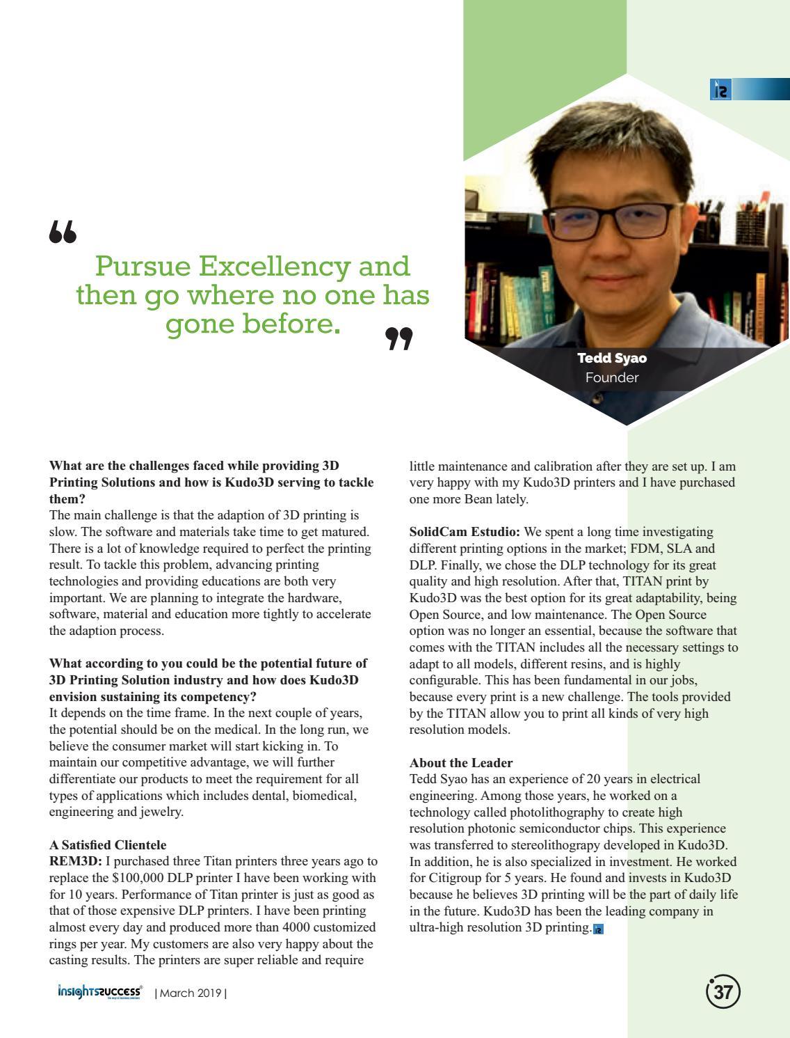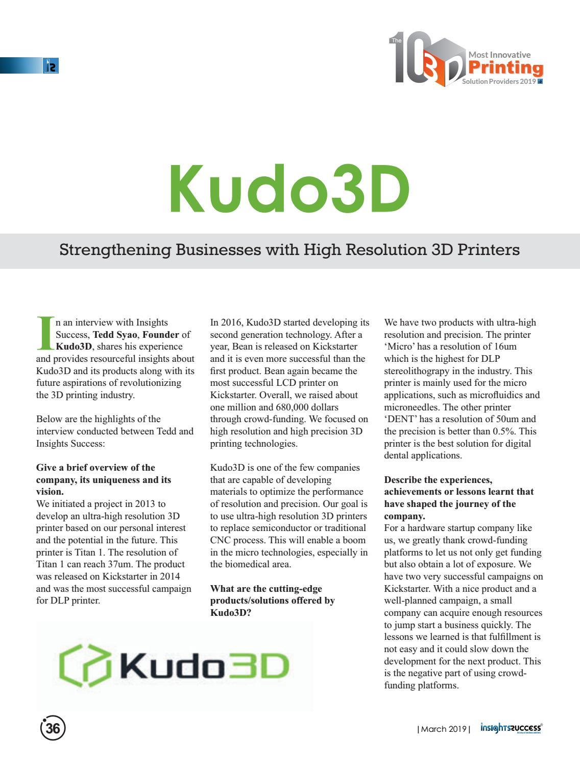 The 10 Most Innovative 3D Printing Solution Providers, 2019 March2019