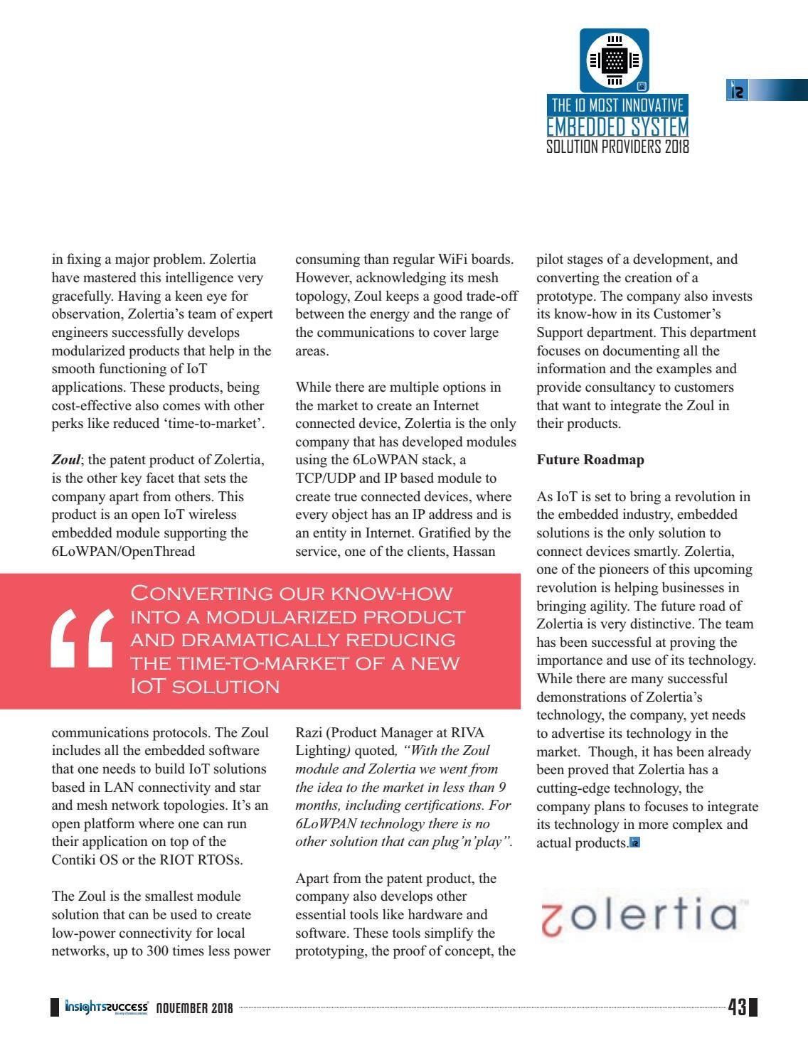 The 10 Most Innovative Embedded System Solution Providers 2018 Nonvember2018
