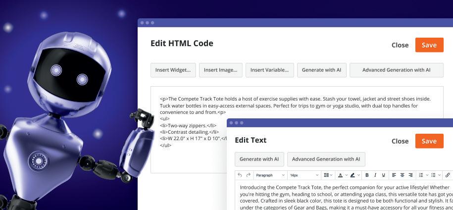 TheAI-drivencontentgeneratorreflectsthisapproach.It facilitatesthecreationandrefinementofproduct descriptionsandSEOmetadatausingonlypublicly