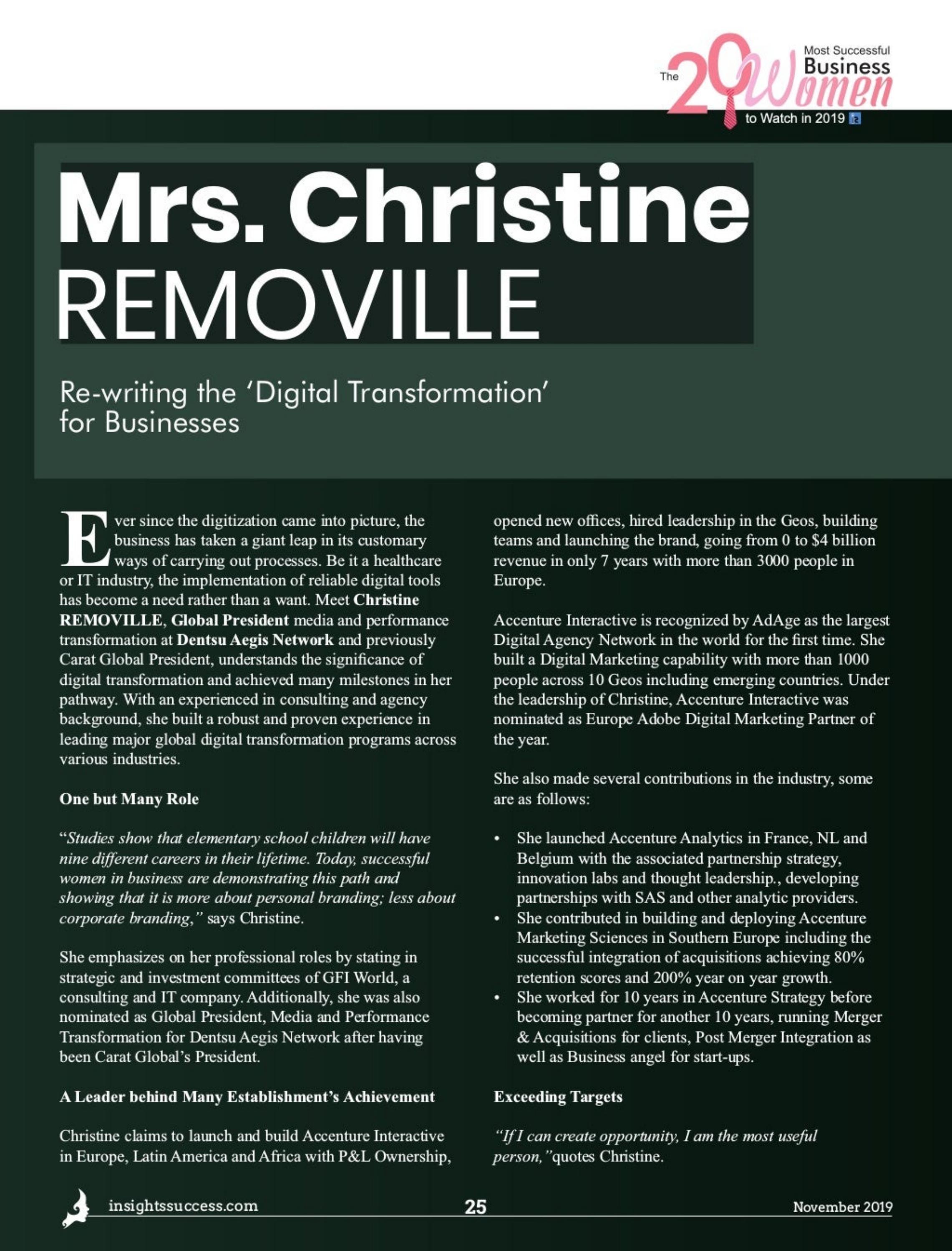 The 20 Most Successful Businesswoman to Watch, 2019 November2019 by Insights Success Media - Issuu