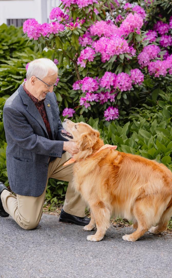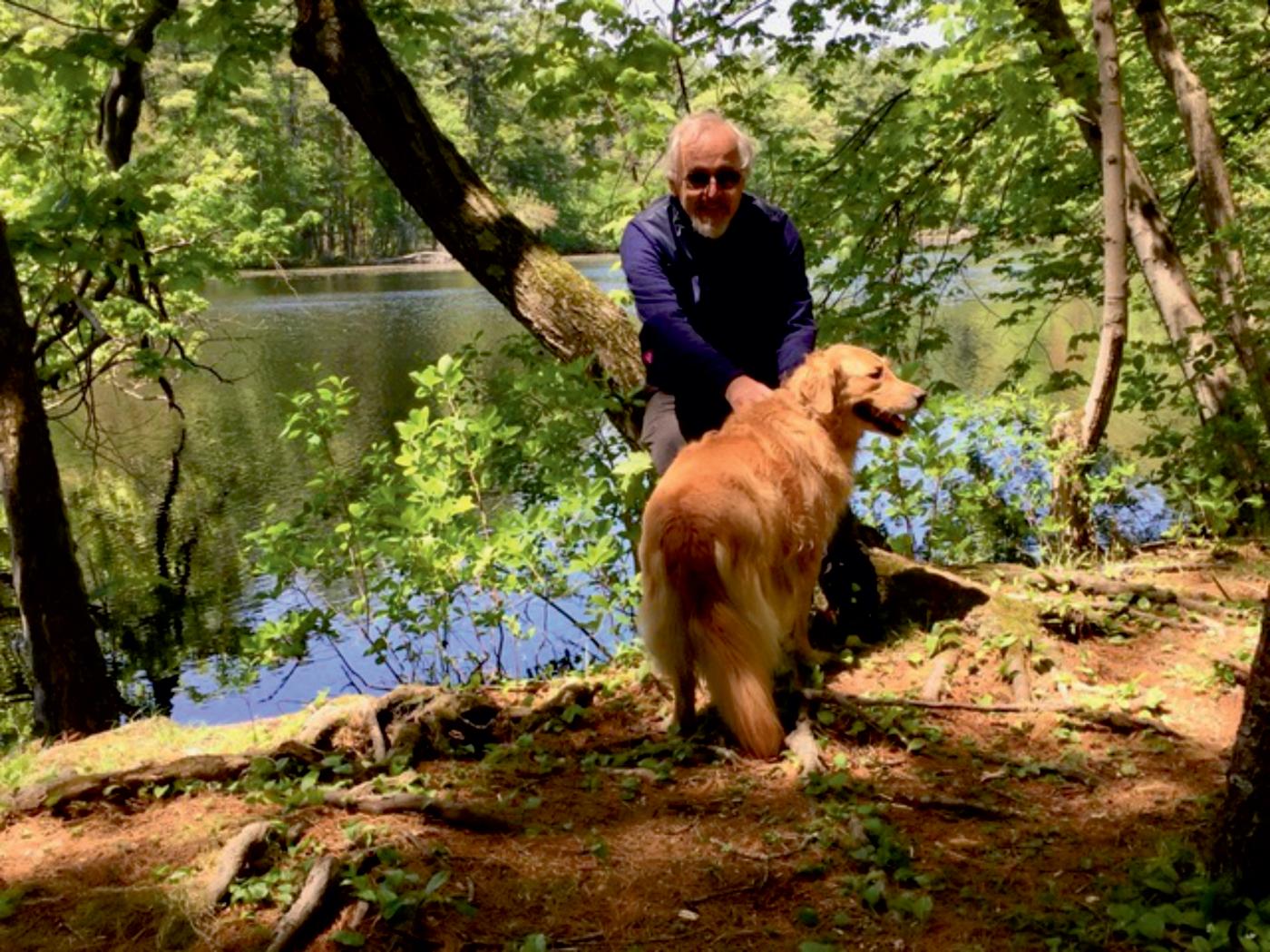 withdogsandcats,LarsonnowshareshishomewithMaisie, a golden retriever who accompanies him on morning walks through Massachusetts woods—moments he cherishes for reflection.