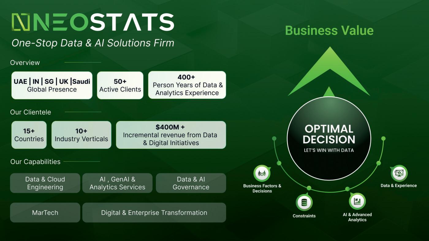 WhenNeoStatslaunched,thecompanyfocusedonData andAIservices,helpingclientswithbothon-premisesand cloudplatformsolutions.Asthecompanyexpandedand clientneedsevolved,leadershiprecognizedtheneedfor end-to-endsolutions,requiringcapabilitiesbeyondData andAI.
