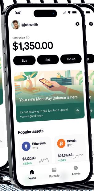 I'mparticularlyexcitedabouttheconvergenceof decentralizedfinanceandtraditionalfinancialsystems. Ourlatestproduct,MoonPayBalance,willcompletely transformthedecentralizedfieldbymakingitmore approachabletonewusers—morelikethe “TradFi” experience.