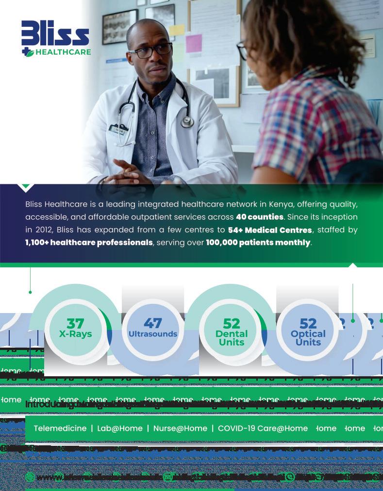 BlissHealthcare,renownedforcreatingKenya'slargest outpatientnetwork,wasfoundedonasimple,yetpowerful idea:ifpatientscan'treachqualitycare,thenqualitycare mustreachthem.Thisbeliefinspiredmeaningful, disruptiveinnovations.