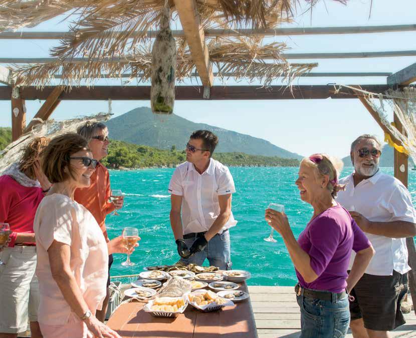 You’ll cruise by private boat to meet with a local Oyster Farmer in Ston (pictured), you’ll discover the freshest flavours while sampling a full Sea-to-Table experience at his specially created floating pontoon and learn about the cultivation of these creamy treasures. Experience on Country Roads of Croatia, p.120.