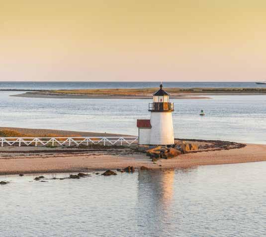 charming harbour towns, and storied visitors, including U.S. presidents. Explore Oak Bluffs with its gingerbread cottages, visit the Flying Horses Carousel and see State Beach, made famous by the film Jaws. Discover the island’s colourful past, from whaling to modern-day tourism, as you gain insights into the history of Edgartown harbour lighthouse. Later, enjoy island hospitality with seasonal offerings from local farms, fishing boats and foragers during a dining experience at Bettini, located in your elegant hotel. (B) (D)