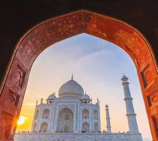 Built in 1632 by the fifth Mughal Emperor in memory of his beloved wife, the shimmering Taj Mahal is one of the Seven Wonders of the World. Explore its stunning marble facade, intricate inlay work, majestic domes, and graceful minarets, along with its symmetrical gardens and pools. Experience on Classic India with Tiger Reserve, p.164.