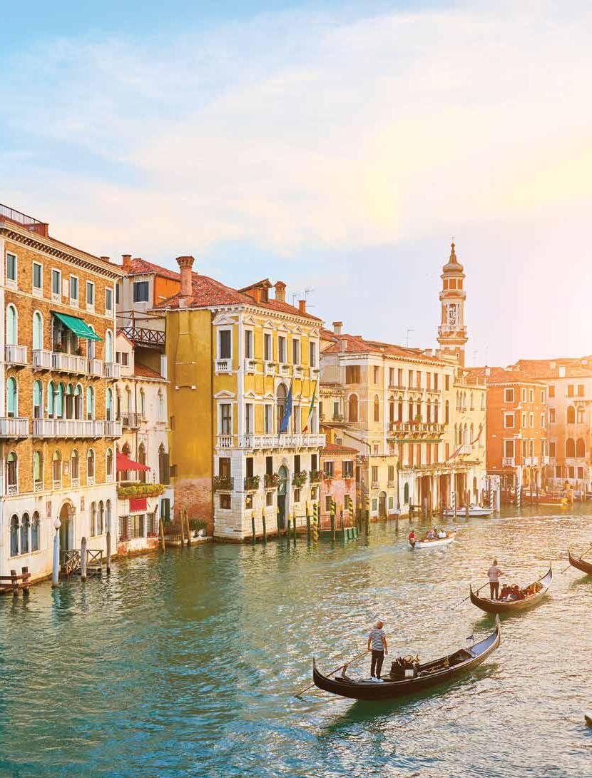 A MEANDER TO REMEMBER No journey to Venice is complete without a ride on one of the city’s 400 gondolas, where your gondolier will expertly guide you through the timeless charm and romance of the city. Mastery of this skill requires approximately 400 hours of training in both the art of navigating and understanding the rich history. Experience on Easy Pace Italy, p.88, Italian Intermezzo, (visit insightvacations.com), and 10 other tours.