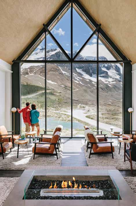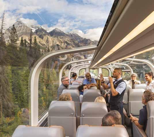 Experience the Glacier Skywalk after hours, a glass-floored walkway suspended 280 m (918 ft) above the Sunwapta River. The following day, enhance your Rockies adventure with a pre-opening Ice Explorer tour of the Athabasca Glacier, enriched with insights from a Local Expert about this ancient 200,000-year-old ice mass. Experience on Canadian Rockies and Pacific Coast, p.184 and Spectacular Rockies & Glaciers of Alberta, p.186.